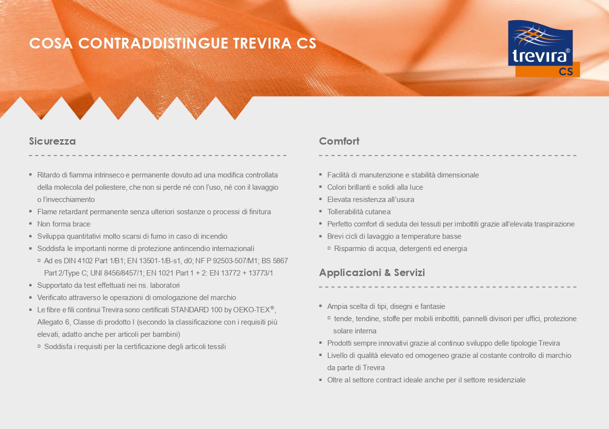 Morbidezza, delicatezza estetica ed eleganza senza tempo, sono le caratteristiche principali di questo tendaggio in poliestere TREVIRA CS, disponibile in nove colori: dalle gradazioni base del bianco, beige e naturale alle tonalità del grigio e del ghiaccio.