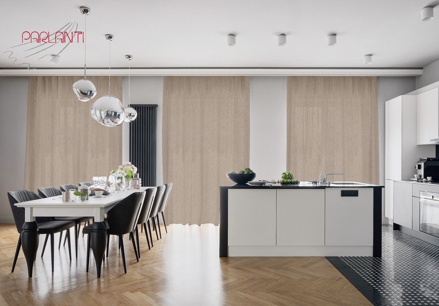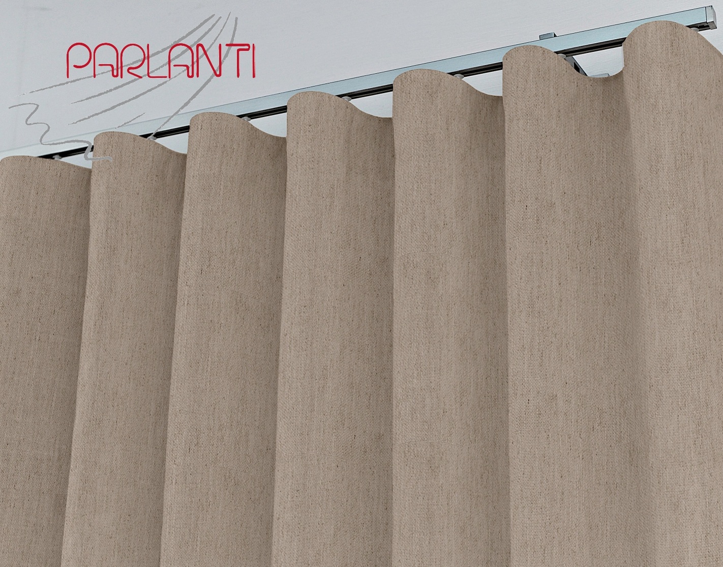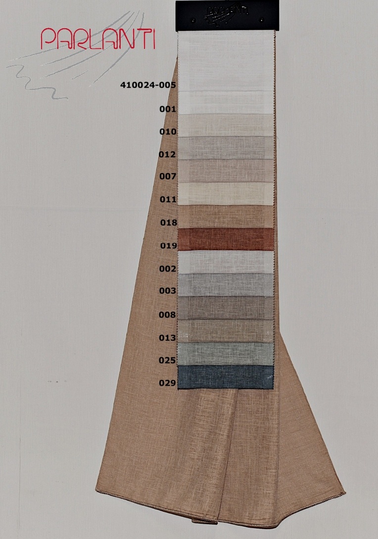 L'articolo 410024 è un tendaggio misto cotone (20%) e lino (10%) realizzato in 315 centimetri di altezza e rifinito con filo eco piombo.