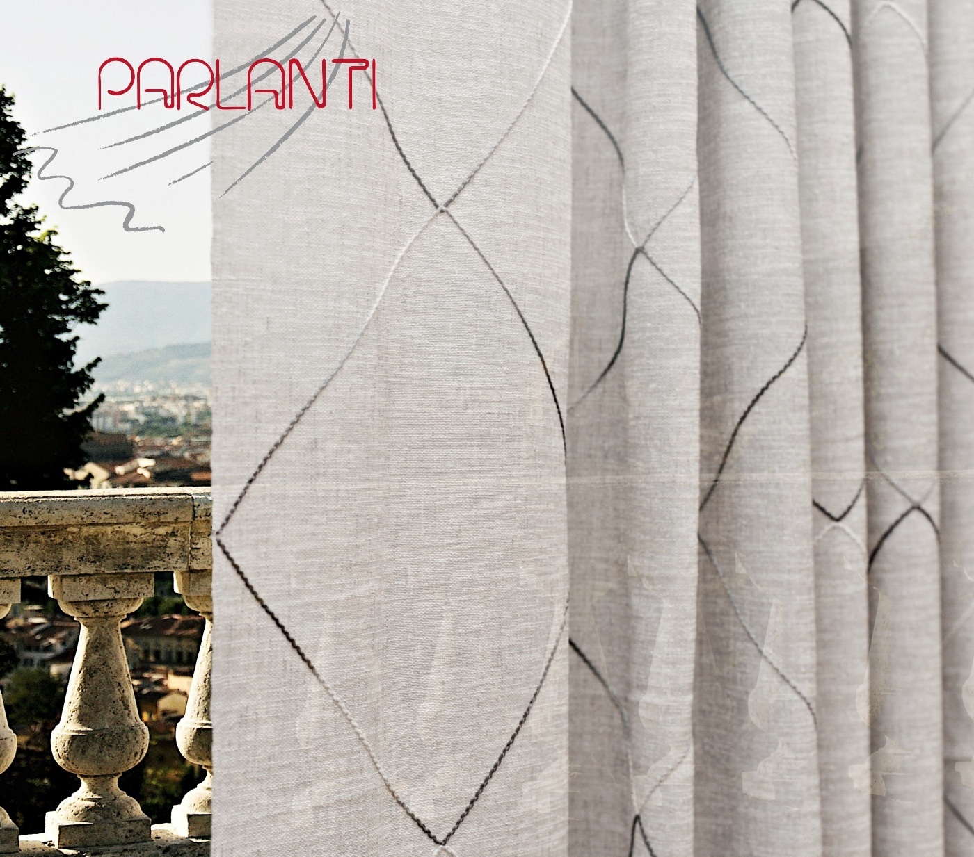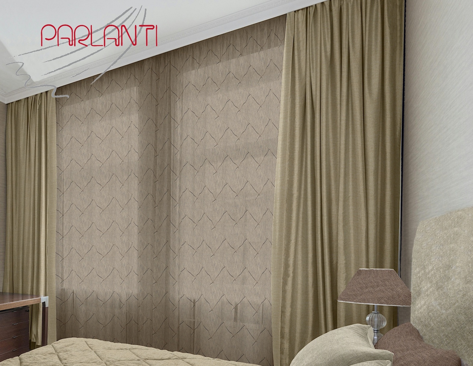 L'articolo 440003 è un tendaggio con cordoncino applicato su base 100% poliestere, realizzato in 300 centimetri di altezza e rifinito con filo di piombo.